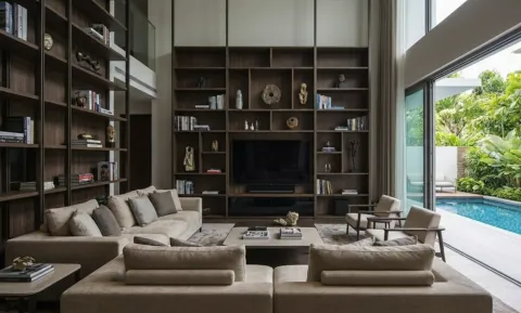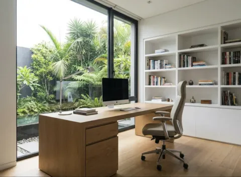 Contemporay Study Room Design with Table and Wall Shelves Landed Property