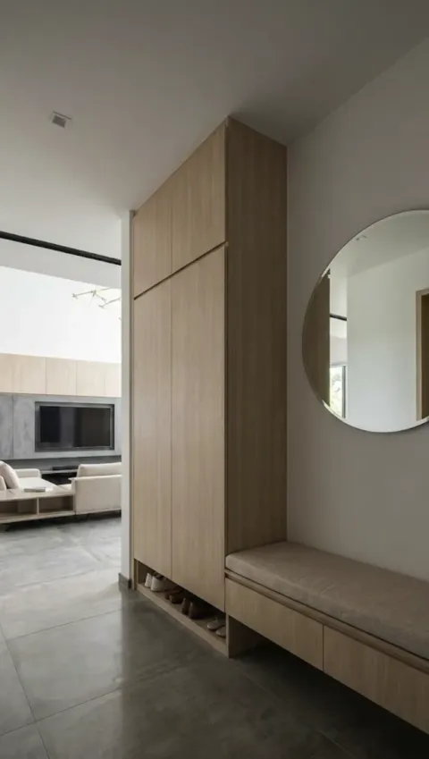 Foyer Interior Design with Shoe Storage and Storage Bench